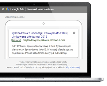 Nie będę kłamał… konkurencja jest spora, bo niemal każdy chce dzisiaj wyświetlać się ze swoją reklamą w Google. Aby jednak robić to dobrze, musisz nie tylko dobrać trafne słowa kluczowe, ale też odpowiednio przygotować reklamę, by wyróżniła się na tle konkurencji i przyciągnęła uwagę odbiorcy. W trakcie kursu pokażę Ci jak to osiągnąć! Nauczysz się tworzyć lepsze teksty, testować różne ich warianty, a nawet wykorzystywać reklamy konkurencji do optymalizacji swoich reklam. Zobaczysz też jak wykorzystywać niezwykle przydatne rozszerzenie reklam tak, aby wyświetlić w swojej reklamie np. numer telefonu firmy, jej lokalizację, poinformować o warunkach dostawy, cenniku czy trwającej aktualnie promocji. Wszystko to sprawi, że Twoje szanse na pozyskanie klienta znacznie wzrosną!