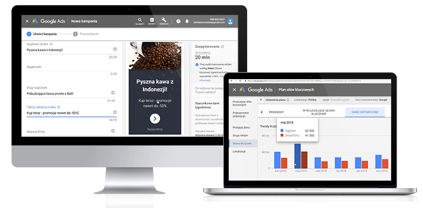 Jeżeli jeszcze nie korzystasz z Google Ads, to możesz być pewny, że nie zarabiasz tyle ile byś mógł! Google Ads, znany jeszcze jakiś czas temu jako Google AdWords, to jedno z najlepszych narzędzi do zdobywania nowych klientów i zwiększania sprzedaży. I nie ma tutaj znaczenia czy prowadzisz firmę wyłącznie internetową, czy lokalny biznes, który może nawet nie mieć swojej strony. Google Ads udostępnia skuteczne narzędzia reklamowe dla każdego przedsiębiorcy niezależnie od branży i wielkości jego biznesu. Jest to też absolutny must-have każdego marketera pracującego jako freelancer czy też poprzez agencję. Jako specjalista od e-marketingu i SEO z ponad 10 stażem wiem to doskonale.