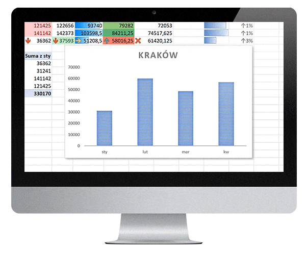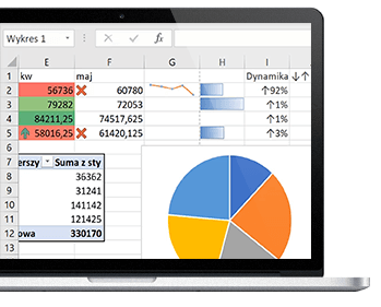 Profesjonalnie i estetycznie przygotowany wykres potrafi zastąpić niejeden skomplikowany raport. Musisz jednak wiedzieć jak przedstawić na nim kluczowe i istotne dla odbiorcy dane. Nauczysz się tego w trakcie kursu pracując z seriami danych, fragmentatorami, tworząc wykresy przestawne czy wykresy osadzone, których elementy łatwo wykorzystasz w osobnych arkuszach. Na praktycznych przykładach pokażę Ci jak prezentować tendencje przy użyciu wykresów przebiegu w czasie. Te miniaturowe, mieszczące się w jednej komórce wykresy będą niezwykle przydatne do szybkiego ilustrowania wzrostów, spadków czy sezonowych trendów.