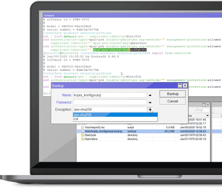 tworzyć kopie zapasowe konfiguracji systemu RouterOS