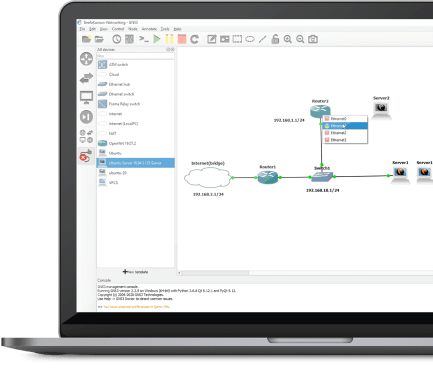 W kursie poznasz aplikację GNS3, dzięki której będziesz mógł bezpiecznie i bez ograniczeń modelować dowolne sieci. Łatwo zbudujesz wirtualną sieć bez konieczności używania realnych urządzeń. To świetna okazja, aby zrozumieć jak poszczególne elementy sieci współpracują ze sobą i jakie zachodzą pomiędzy nimi interakcje.