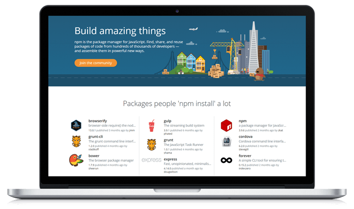 Olbrzymia popularność JavaScript przekłada się na niesamowitą ilość gotowego kodu, który możesz łatwo dodać do swoich projektów za pomocą narzędzia npm. Wykorzystaj to co stworzyli inni zamiast pisać każdą funkcjonalność od zera.