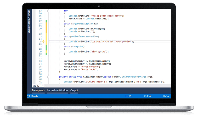 Obiektowość to kolejny aspekt języka C#, którym będziemy się zajmować. Poznasz filary programowania obiektowego; dowiesz się czym jest dziedziczenie, polimorfizm oraz jak używać klasy abstrakcyjnych i interfejsów. Z kursu dowiesz się jak radzić sobie z obsługą błędów, jak zgłaszać wyjątki, jak te wyjątki przechwytywać i obsługiwać w naszym programie.