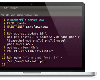 Kurs ten oparłem na praktycznej wiedzy, wykorzystując łatwe do zrozumienia przykłady. Dzięki temu zobaczysz, jak Dockera używa się w realnych scenariuszach i w jaki sposób możesz wykorzystać jego zalety w swojej własnej pracy. Efektem końcowym kursu będzie kontener z konkretną, działającą aplikacją, którą można błyskawicznie wdrożyć na serwerze.