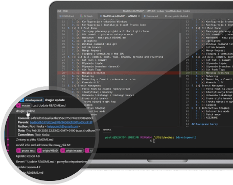 Opanujesz sprawną pracę z branchami oraz tagowanie