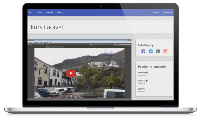 Kurs to nie tylko teoria. To przede wszystkim cała masa praktycznych technik pracy, które poznasz na przykładzie konkretnej webowej aplikacji. Razem z autorem stworzysz krok po kroku witrynę z filmami wideo pełną interaktywnych elementów oraz treści. Projekt będzie wyposażony w liczne przydatne funkcjonalności. Wśród nich m.in.