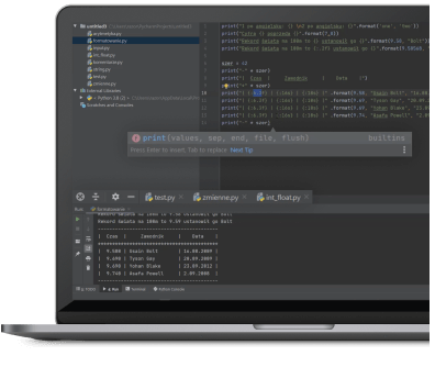 W początkowych rozdziałach szkolenia, oprócz krótkiego wprowadzenia i zapoznania się z Pythonem zajmiemy się konfiguracją naszego środowiska IDE - PyCharm. Zainstalujemy je, skonfigurujemy i przygotujemy do pracy. W trakcie kursu pokażę Ci za pomocą prostych przykładów, najważniejsze komendy języka Python. Wspólnie ze mną, będziesz pisać kod, który następnie wykonasz samodzielnie na swoim komputerze. Dowiesz się, po co i kiedy pisać komentarze, czym jest string, jak go formatować oraz w jaki sposób wprowadzać dane do programu z klawiatury.