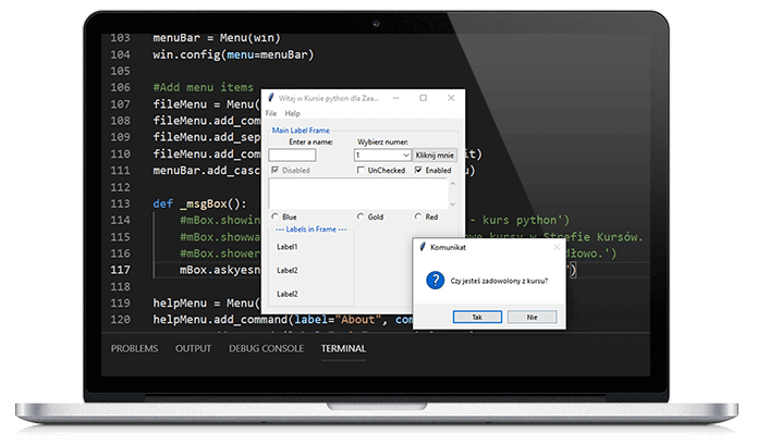 Python to nie tylko aplikacje działające w Command Line! Posiadając nieco większą wiedzę na temat programowania w tym języku, będziesz mógł tworzyć również aplikacje okienkowe. W trakcie kursu wykorzystamy do tego niezwykle popularną bibliotekę Tkinter. Używając jej poznasz takie elementy jak label, które pozwalają tworzyć etykiety dla elementów TextBox. Nauczysz się tworzyć przyciski i podpinać do nich własne metody czy funkcje. Zobaczysz również jak do interfejsu aplikacji wdrożyć elementy checkbutton lub tworzyć ankiety wykorzystując radiobutton. Za pomocą biblioteki matplotlib stworzymy natomiast dynamicznie generowane, czytelne i przejrzyste wykresy.