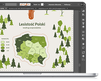 Drugim, bardziej zaawansowanym projektem, który pozwoli nie tylko sprawdzić, ale też rozwinąć zdobyte przez Ciebie umiejętności, jest rozbudowana infografika. W materiałach dołączonych do kursu znajdziesz wszystkie niezbędne elementy, które pozwolą Ci razem ze mną tworzyć ten projekt od A do Z. Pracując nad nim dowiesz się, jak dobrać odpowiednie kolory, dostosować układ projektu, dodawać symbole, tekst czy tło. Zobaczysz również jak tworzyć instancje obiektów, własne wzory czy pędzle obrysu.