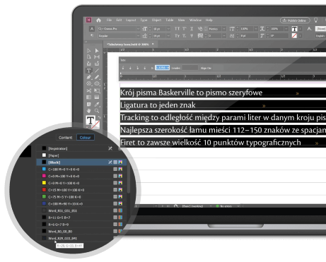 Z tym kursem poznasz między innymi bardzo przydatne techniki pracy z tekstem. Nie tylko będziesz w stanie dowolnie zarządzać krojem pisma, ale również opanujesz tworzenie nawet najbardziej złożonych układów tekstu. Dowiesz się m.in. jak parować kroje pisma, jak sprytnie zarządzać przelewaniem tekstu, jak umiejętnie zarządzać akapitami i wiele, wiele więcej.